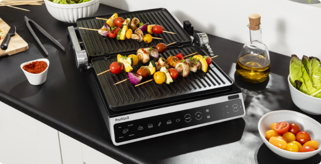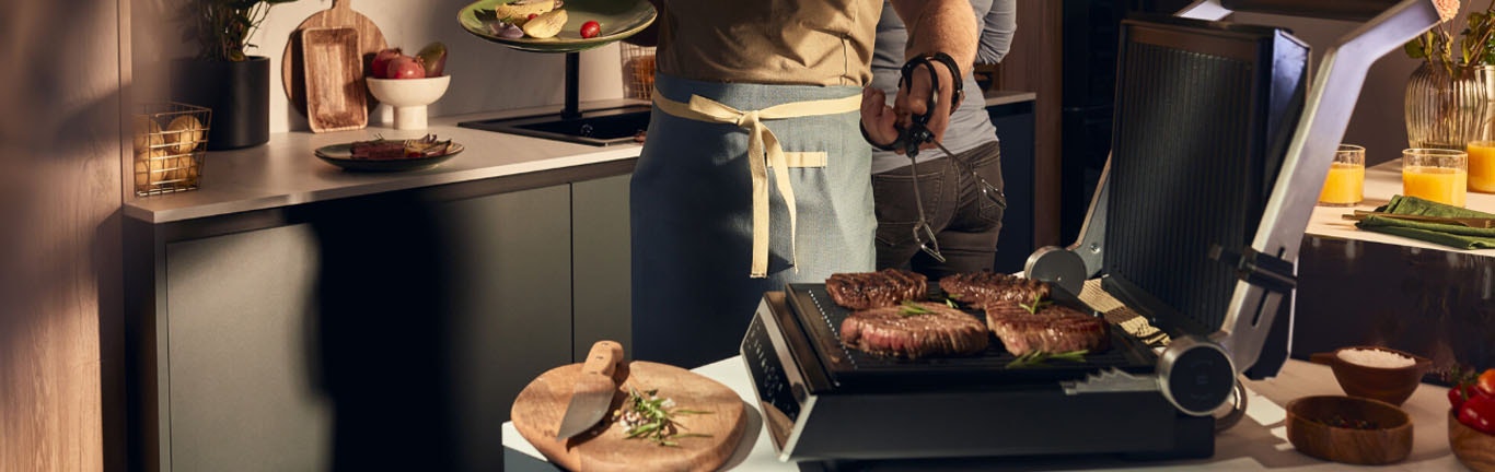 Chcete na své hosty udělat dojem dokonale grilovaným steakem, hamburgerem nebo kuřetem? Využijte funkčních, přednastavených programů, které automaticky upraví teplotu podle Vašeho pokrmu. Můžete si s hosty s jistotou povídat s vědomím, že váš pokrm bude chutnat dokonale.