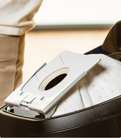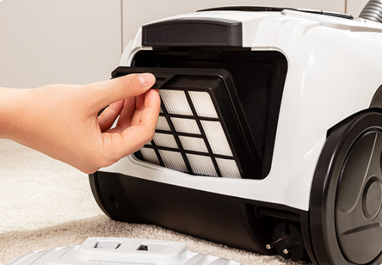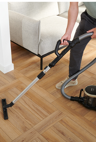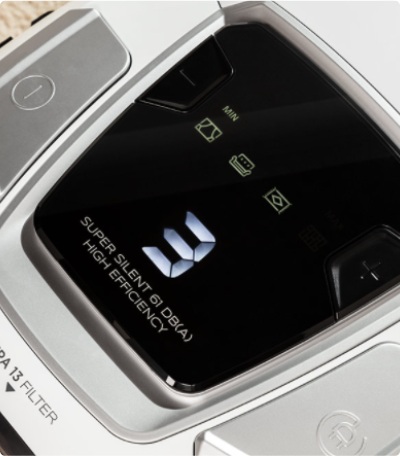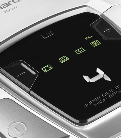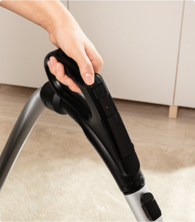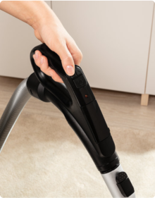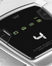 Vždy si můžete zkontrolovat výkon motoru pro čištěný povrch. Moderní a přehledný LED displej zobrazuje čtyři ikony označující aktuální úroveň výkonu. V závislosti na Vašich potřebách můžete upravit výkon vysávání tak, aby vyhovoval záclonám, pohovkám, kobercům nebo parketovým podlahám.