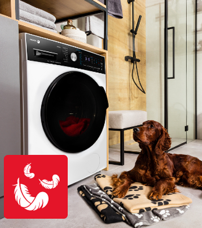 Maksymalna efektywność prania dzięki zwiększonej wydajności płukań pozwala na pozbycie się sierści z ubrań, koców czy pościeli.