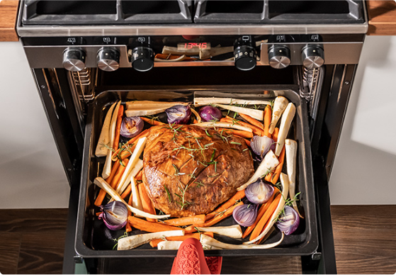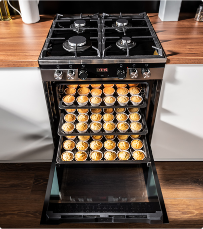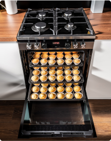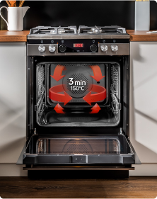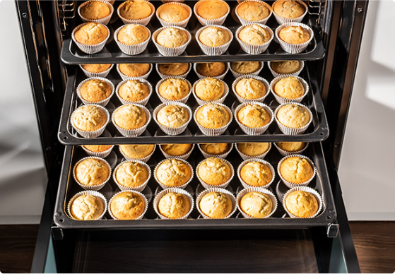 Dokonalé pečení není jen otázkou dovedností, ale především vhodné trouby. Nová konstrukce komory s větším topným tělesem garantuje ideální rovnoměrnou distribuci tepla a stabilní teplotu v celé troubě. Komora trouby je navíc větší a má více úrovní, takže nyní můžete upéct najednou několik plechů cukrovinek s jistotou, že bude rovnoměrně propečené! I plechy jsou větší a nová verze ventilátoru urychluje předehřívání - na 150°C za pouhé 3 minuty! S BakingPro System™ můžete péct více, lépe a pohodlněji – az každodenních povinností se stane radost!