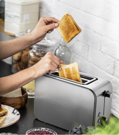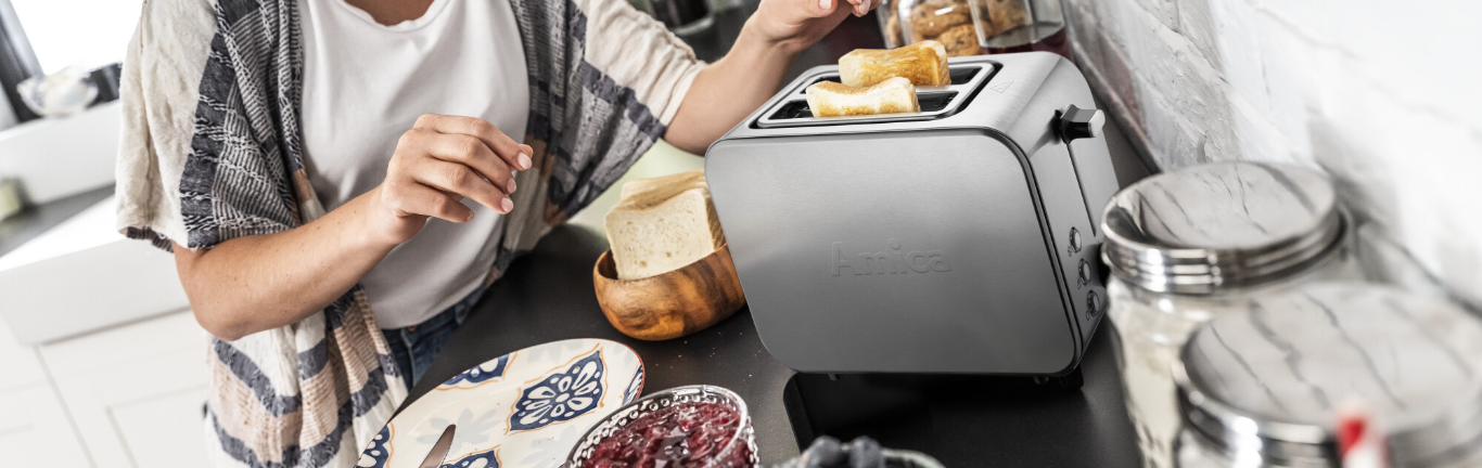 Mnoho lidí si čištění neužívá. Ale ještě těžší je vyčistit vnitřek spotřebiče... Proto jsou topinkovače Amica vybaveny speciální miskou na drobky – po použití ji můžete snadno vyjmout a vysypat drobky zespodu spotřebiče. Nehromadí se uvnitř, takže už nemusíte nic čistit!