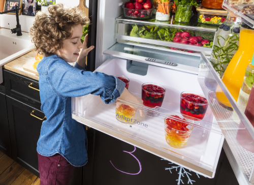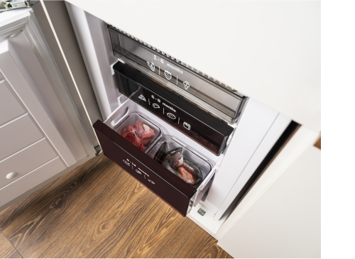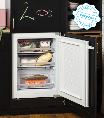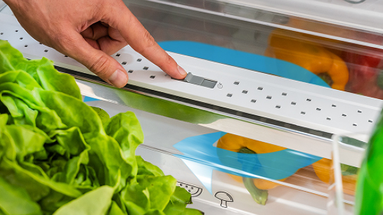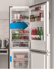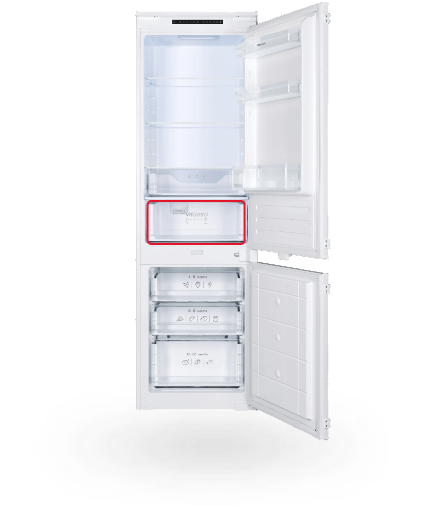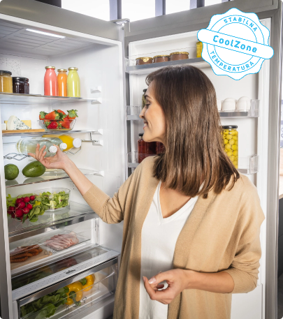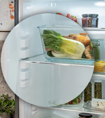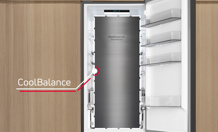 I když chladničku otevřete a zavřete, teplota uvnitř zůstane stejná! Díky speciálnímu kovovému panelu na zadní stěně uvnitř chladničky je vnitřní teplota méně náchylná ke kolísání při otevírání a zavírání dveří chladničky. To pomáhá udržet potraviny déle čerstvé, udržuje stabilní teplotu a zároveň zlepšuje energetickou účinnost a dodává interiéru skvělý vzhled.