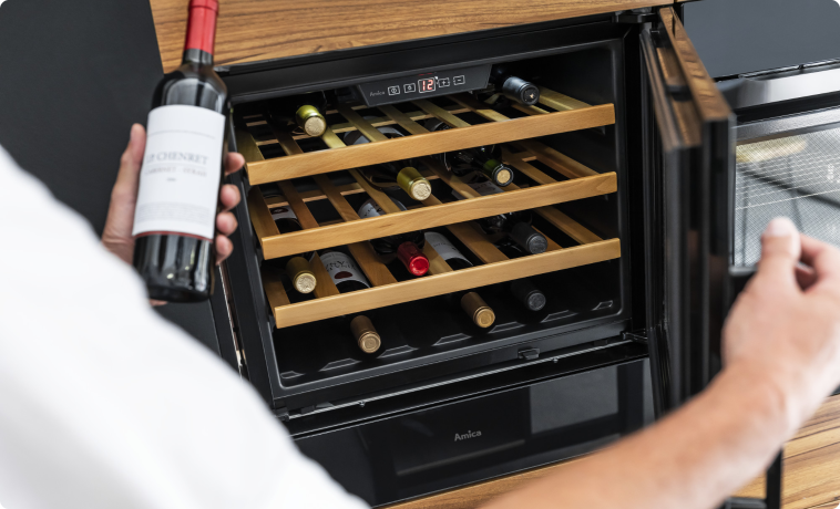 Máte rádi různé druhy vína? Nyní můžete své víno skladovat za optimálních skladovacích podmínek. Můžete dokonce nastavit skladovací teplotu přesně podle potřeby konkrétní odrůdy hroznů nebo stupně zrání. Vinotéky Amica poskytují přesné elektronické řízení teploty v chladící zóně. Červené, bílé nebo šumivé víno? Bez ohledu na to, co to je, bude vždy ideálně chlazený a čeká na správnou příležitost k jeho odkorkování.